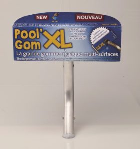 • Pool’Gom XL. C’est un produit avec les mêmes caractéristiques que Pool’Gom mais en grand format, 26 × 9 cm, avec de ce fait une surface de nettoyage optimisée pour intervenir sur le fond des piscines ainsi que sur les parois ;