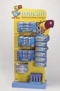 La dernière-née est une PLV sol, 80 × 40 cm, livrée pleine, regroupant sur un seul présentoir l’ensemble des produits Toucan. Un autre de nos points forts réside dans la disponibilité de nos produits.