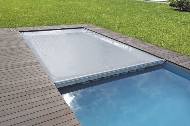 Ultima Cover fonctionne grâce à un moteur hydraulique intégré dans un coffre sec en bout de bassin et, de ce fait, aucune arrivée électrique n’est présente aux abords du bassin. Enroulée, elle est totalement invisible et son système de rails dissimulés sous la plage permet une parfaite intégration dans l’environnement. Les utilisateurs apprécieront tout particulièrement la mise en sécurité rapide de la piscine, car Ultima Cover ne nécessite aucun kit d’accrochage. Sa toile PVC 580 g/m², assemblée par soudure haute fréquence, est disponible en 5 couleurs (bleu, vert, amande, gris et beige). 2 versions sont proposées : intégrée pour les piscines en construction ou en transformation et hors sol pour les rénovations et les piscines de forme libre.