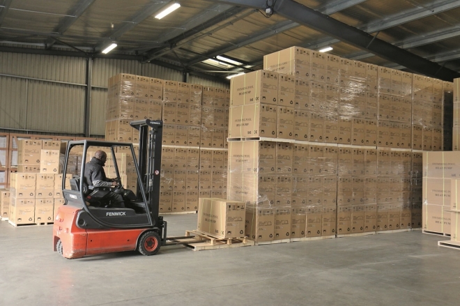 Nous disposons au siège de l’entreprise d’une équipe de 7 personnes ; par ailleurs, 8 commerciaux, parfaitement formés à nos produits, visitent nos clients installateurs. Philippe Ferrant nous a rejoints en qualité de directeur commercial fin 2013 et partage avec nous sa longue et précieuse expérience du marché de la piscine. Depuis le début de cette année, afin de faire face à notre développement, nous avons intégré de nouveaux locaux situés à la périphérie de Bordeaux où nous disposons d’une surface de stockage de 2000 m2. Dans cet entrepôt, nous maintenons en permanence un stock correspondant à 6 mois de chiffre d’affaires et ce pour l’ensemble des références présentes dans notre catalogue, y compris les machines de forte puissance destinées aux piscines de collectivités. C’est pour nos clients la certitude, sur un marché très saisonnier comme celui de la piscine, de la disponibilité permanente des produits qu’ils commandent. Concernant l’organisation logistique, les commandes qui nous parviennent avant midi sont expédiées le jour même et sont livrées en 48 ou 72 heures. Un service express, pour une livraison en 24 heures, est également possible.