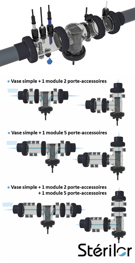 La qualité des composants hydrauliques étant tout aussi importante que la qualité des appareils de traitement de l’eau eux-mêmes ; les équipes Stérilor ont développé une nouvelle offre hydraulique au service des professionnels leur offrant confort d’installation, adaptabilité et fiabilité.