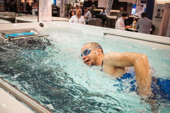 Grâce à cette récente acquisition, le groupe américain se positionne sur le bassin de nage avec trois modèles dont le E700 qui s’adresse aux sportifs avec la possibilité de nager 100 m en 1 minute 14 secondes, de courir, de ramer, de pédaler grâce à des accessoires additionnels. Côté piscine, Endless Pool apporte aussi sa solution de nage à contre-courant à insérer dans n’importe quel bassin avec le système à turbine Fastlane. À souligner, l’arrivée d’un spa rotomoulé de la marque AHS, ultra-léger, coloré, destiné au marché de la location événementielle.