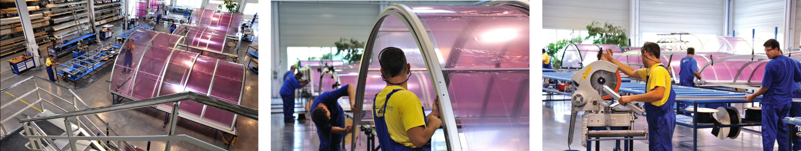 Deux types de polycarbonate (transparent et double paroi (alvéolaire)) sont utilisés pour la fabrication des équipements. Le matériel bénéficie d’une garantie de 10 ans.