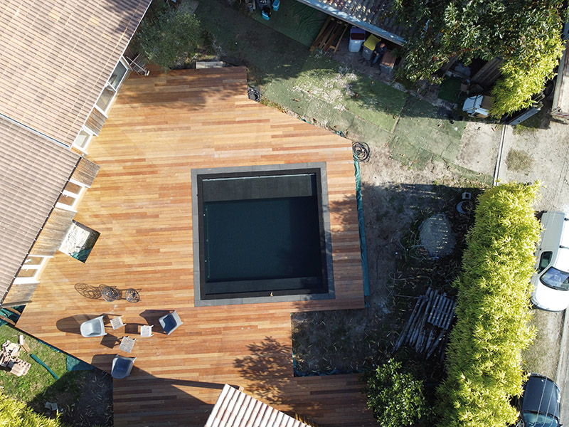 Dimensions : 5 m x 5 m – Profondeur : 1,40 m – Volume : 23 m3