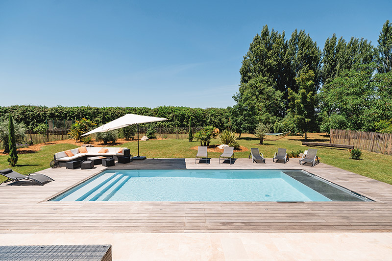 « Aujourd’hui, la piscine et le paysage représentent chacun 45 % du chiffre d’affaires. L’activité paysage intègre 10 % dédiés à l’entretien. L’activité Wellness, créée en 2020, compte également pour 10 %. Les clients viennent chez nous en majeure partie grâce au bouche à oreille. Pour autant, nul n’est prophète en son pays. Nous communiquons régulièrement sur notre site internet et sur les réseaux. La qualité des réalisations et l’écoute des besoins et souhaits de nos clients par l’ensemble de l’équipe portent leurs fruits. En ce moment, nous nous adaptons à la demande entrante qui est importante. Les carnets de commandes sont bien remplis. Pour la piscine, notre plan de charge nous pousse jusqu’en 2023. Notre zone de chalandise se limite à 1 h maximum autour de Gennes. C’est la règle dans 90 % des cas, mais très occasionnellement, nous nous déplaçons plus loin lorsque nous travaillons pour des architectes ou des chantiers spécifiques. Cela nous arrive d’aller en région parisienne ou sur la côte Atlantique pour des projets atypiques sur lesquels notre expertise est sollicitée ».