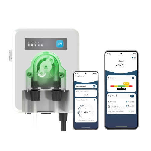 En un seul coup d’œil, il est possible de connaître l’état du pH dans le bassin grâce à sa pompe doseuse qui s’éclaire en fonction de la mesure et / ou des alertes. Un gain de temps au quotidien grâce à une visualisation instantanée du pH de l’eau en un seul regard dans le local technique, sans smartphone !