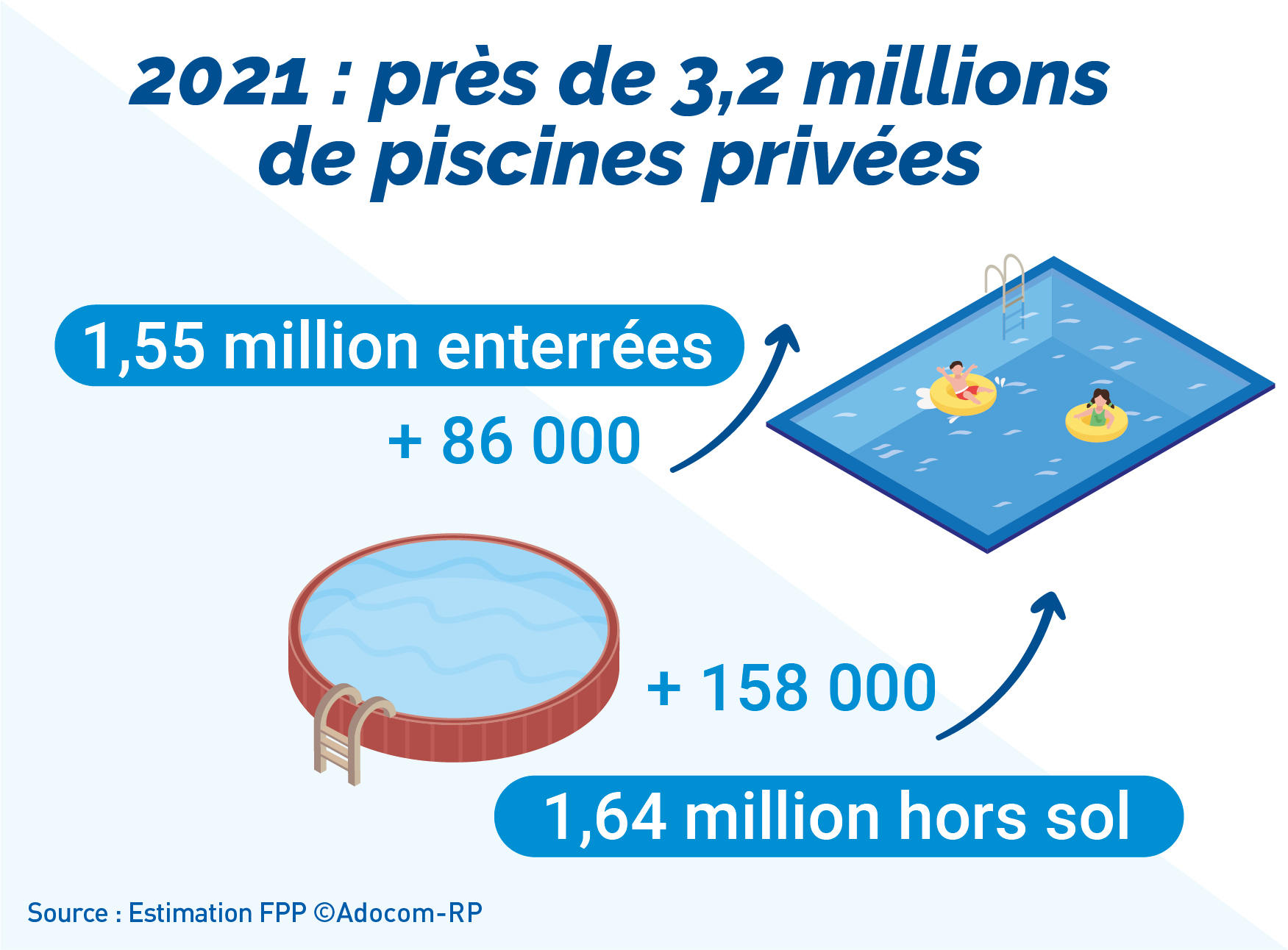 Jacques Braun a présenté les chiffres 2021 du marché qui enregistre désormais 3,2 millions de piscines privées en France (+ 244 000), dont 1,55 million enterrées. Il a précisé trois indicateurs importants de cet engouement :