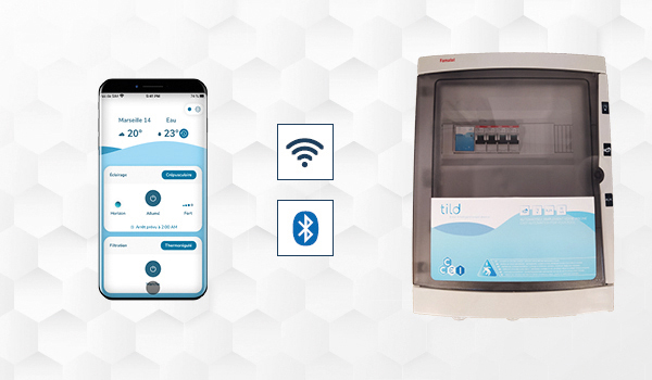 Tild est un coffret connecté et intuitif. Cette solution complète offre un gain à l’usage grâce à une application smartphone dédiée. Les fonctions essentielles de la piscine se paramètrent directement via un smartphone.