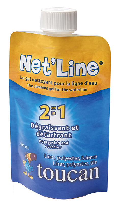 Il y a 2 ans, nous avons relooké nos supports. L’an dernier, nous avons remis sur le marché Net’Line®, le gel 2 en 1 pour la ligne d’eau, emballé dans un Doy Pack, emballage souple, avec bouchon de sécurité normé ISO 8317.