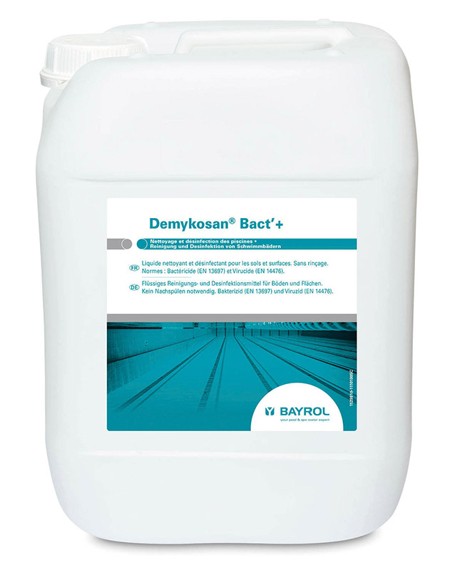 Bayrol innove avec un nettoyant désinfectant liquide hautement concentré, Demykosan Bact’+. Destiné aux piscines collectives (piscines publiques, centres de remise en forme, saunas, solariums, campings…), ce produit 2-en-1 nettoie et désinfecte l’eau, ainsi que les surfaces et les sols des abords des bassins et des sanitaires.