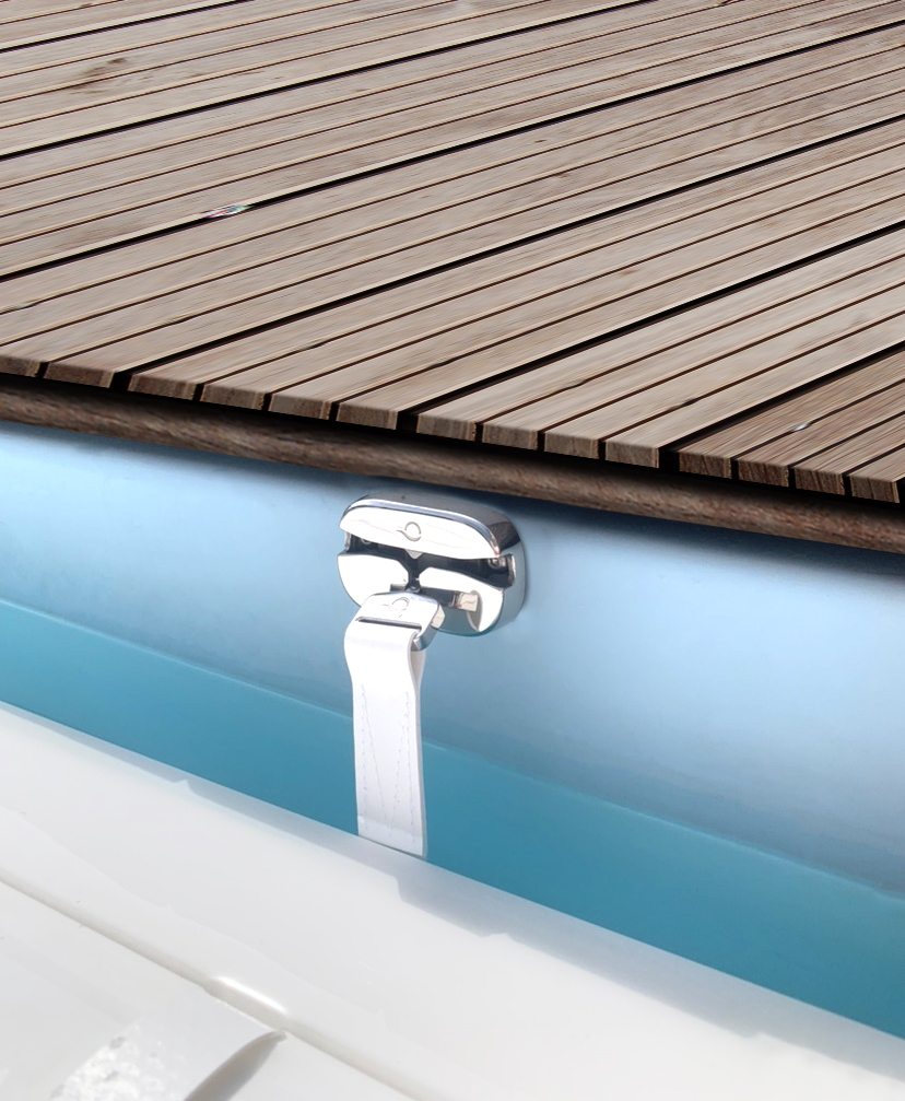 Nous proposons d’ailleurs une nouvelle attache très design en inox, la Navy, inspirée de l’accastillage, dont on peut choisir la finition. La mallette se présente comme un écrin à bijoux, parce que l’achat d’un volet représentant un certain investissement, on se doit d’avoir une présentation à la hauteur des attentes du client. Vient enfin l’étape du choix du mode de livraison. Là encore, pour faciliter la vie du professionnel, chaque camion embarque un chariot pour faciliter la livraison chez le client et les emballages sont fractionnés en colis de 25 kg au maximum pour permettre à une seule personne de les déplacer.